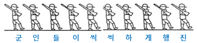 예: “군인들이 씩씩하게 행진”에서 모든 음절을 비교적 균등하게 발음