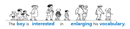 예: “The boy is interested in enlarging his vocabulary”. (내용어는 강세, 기능어는 비강세)