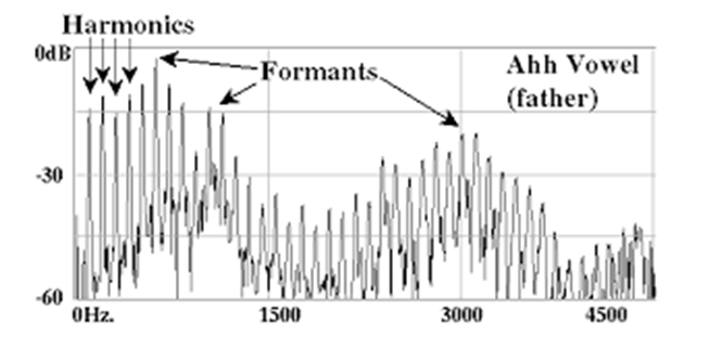사람의 목소리 역시 진동이므로, 소리의 구조와 동일하다. 폐에서 나온 공기가 성문을 통과하면서 만들어진 진동인 성대원음 (목소리의 원천-Source)도 기음(F0)과 여러 개의 배음으로 구성되어 있다.