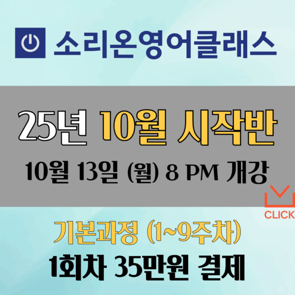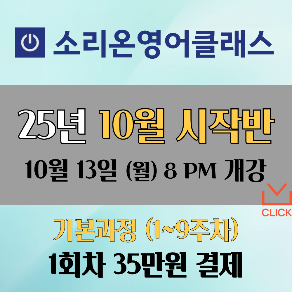 소리온영어 미국영어 듣기-발음-정상속도 말하기 클래스 (시작반) 입니다.