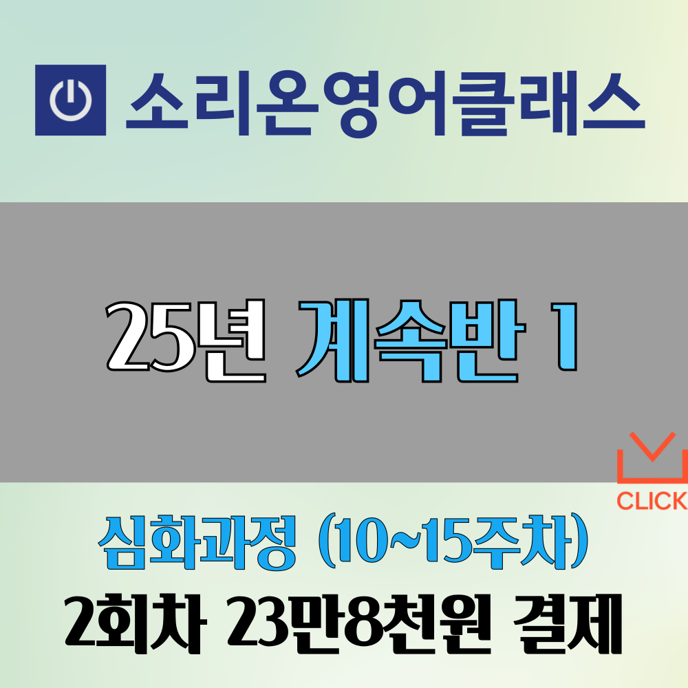 소리온 미국영어 듣기-발음-정상속도말하기 클래스 (계속반 1) 입니다.