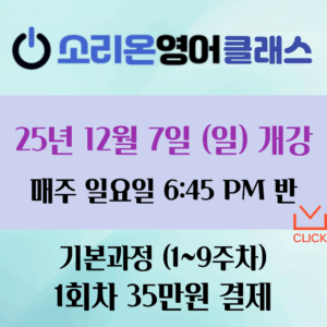 소리온영어클래스 25년 12월 7일 (일) 6:45 PM반